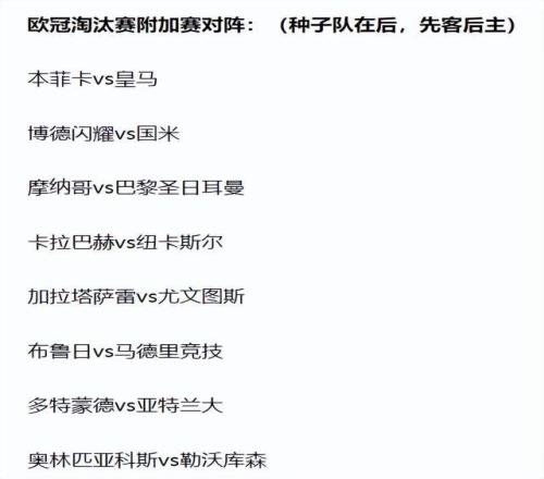 其他比赛,大巴黎遇到摩纳哥,纽卡斯尔面对卡拉巴赫,勒沃库森对阵奥林匹亚科斯,尤文抽到加拉塔萨雷,亚特兰大与多特上演焦点对决,马竞抽到了布鲁日,最终2回合踢完,将有8支球队进入16强,与已经晋级的8支球队,竞争本赛季欧冠冠军!